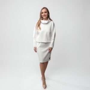 Moteriškas kostiumėlis su sijonu ,,Peach effect off white,,