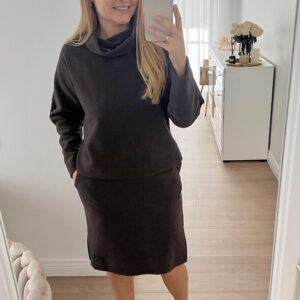 Moteriškas kostiumėlis su sijonu ,,Peach effect dark choco,,